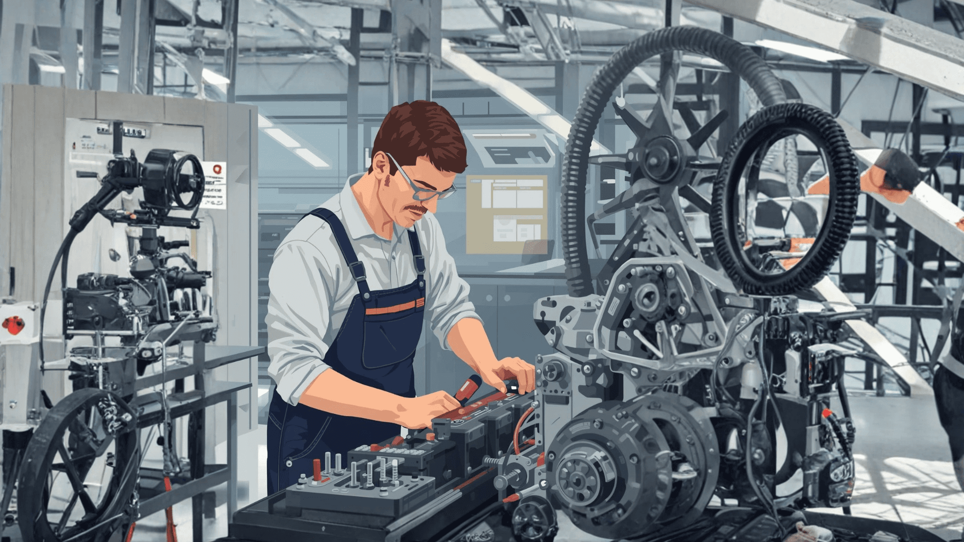 Installation, adjustment, and connection of mechanical, electrical, and electronic assemblies